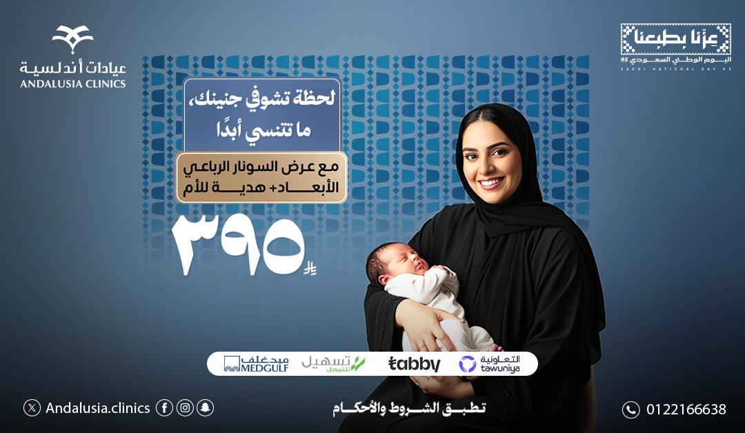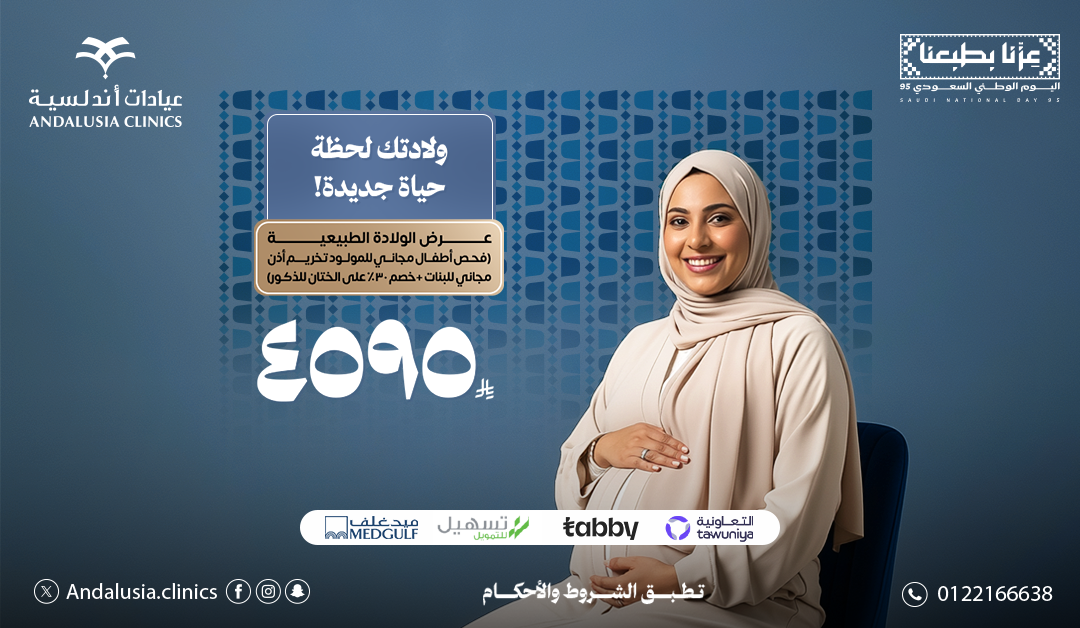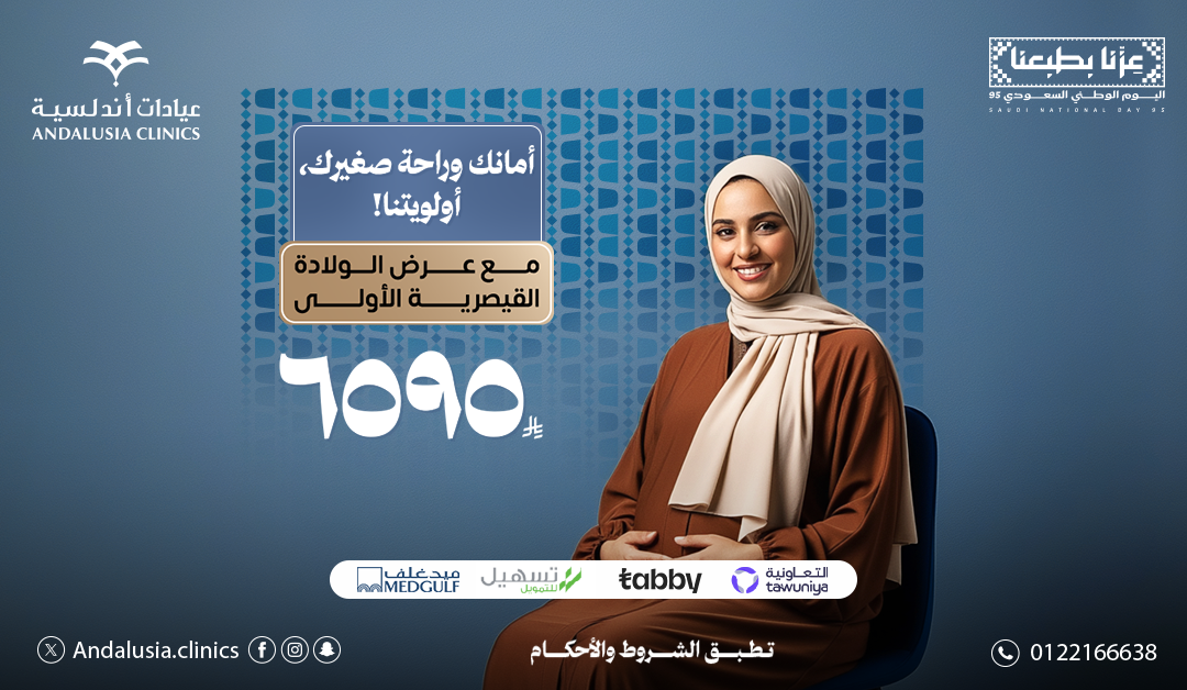 عرض الولادة القيصرية الثانية يشمل فحص أطفال مجاني للمولود - تخريم اذن مجاني في حالة الاناث - 30% خصم للختان للذكور 9999 ريال فقط